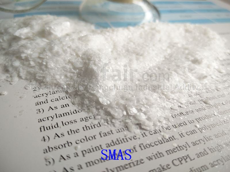 - SMAS can be used in Polycarboxylate Superplasticizer(PC) as the chain transfer agent. Keep the PC being off odour ,meanwhile indraughting sulfonic acid group with high dispersion and dispersion retention ability. Good effect for plasticizer of cement admixture.