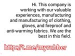 سلام این شرکت در حال کار با تجربه های با ارزش ما، تولید و ساخت لباس، گلاسه، و پارچه های ضد آتش و ضد گرمایش است. ما بهترین ها در این زمینه هستیم.